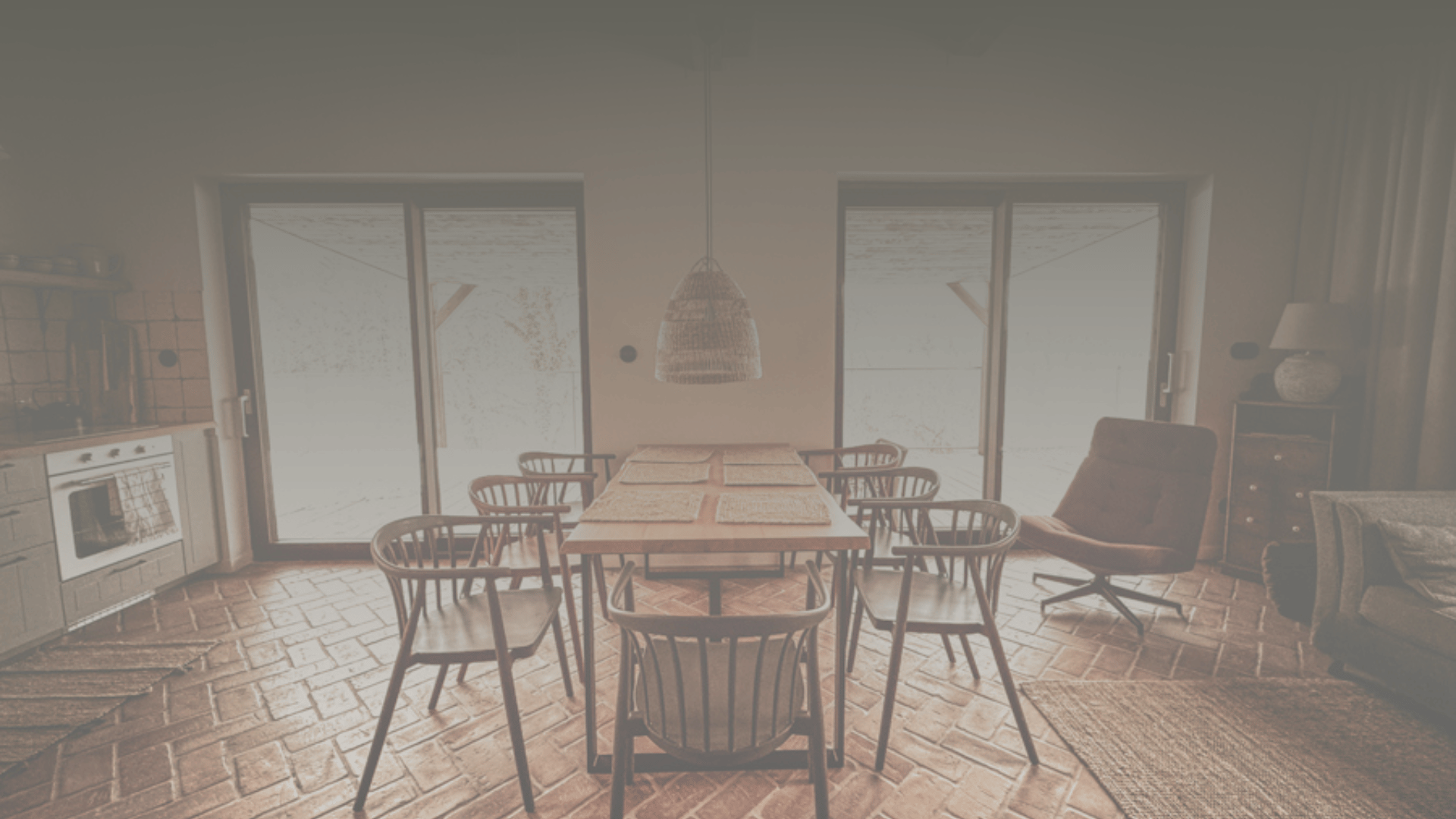 Tu czas zwalnia. Miękkie kanapa, duży stół wszystko zaprasza do posiedzenia, relaksu, spędzenia czasu razem.