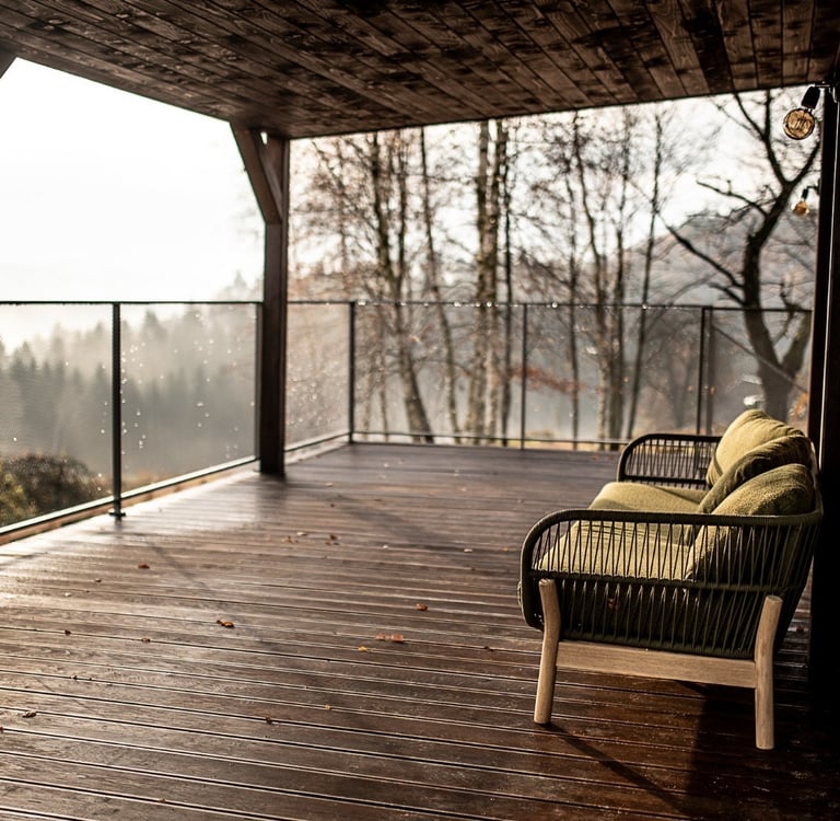 Przestronny, z pięknymi widokami. Idealne na poranną kawę, wieczorny relaks czy spotkania z bliskimi na świeżym powietrzu.